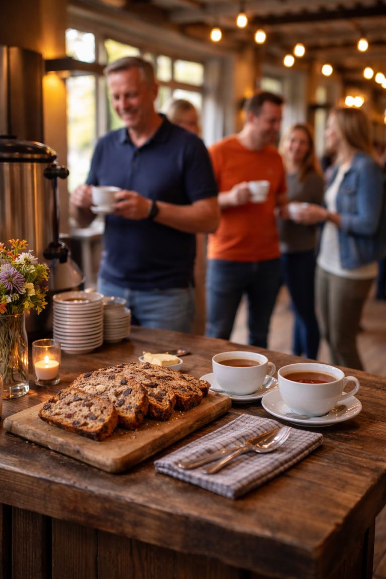 Op 4 juni om 16:30 worden alle deelnemers van harte welkom geheten op de locatie. Bij binnenkomst staat er een warm kopje koffie of thee klaar, geserveerd met een heerlijke krentenwegge. Dit moment biedt iedereen de gelegenheid om rustig aan te komen, bij te praten en alvast in de gezellige sfeer van de middag te komen.